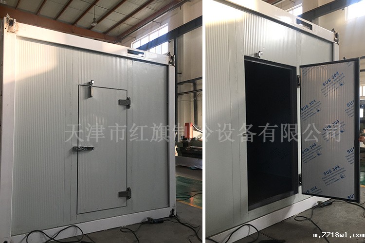 天津西青张家窝钢结构冷库安装现场(冷库自动回归门)